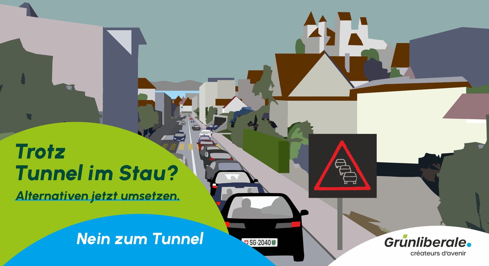 Die Lösung des Verkehrsproblems ist auch ohne Stadttunnel erreichbar. Der Fokus muss auf der Verlagerung auf umweltfreundliche Verkehrsmittel und eine Erhöhung der Aufenthaltsqualität gelegt werden. Das Gesamtverkehrskonzept der Stadt sieht dazu einen breiten Fächer an Massnahmen wie den Ausbau des öffentlichen Verkehrs, Velomassnahmen oder Temporeduktionen vor. Ergänzend kann über innovative Massnahmen wie ein Road-Pricing oder eine stärkere Dosierung des Autoverkehrs eine deutliche Verbesserung erzielt werden. «Wir wollen uns auf das Bewegen von Menschen und nicht von Fahrzeugen konzentrieren», so Silas Trachsel. Die Mitgliederversammlung der Partei hat deshalb die Nein-Parole zur Stadttunnel-Abstimmung am 10. September 2023 beschlossen.